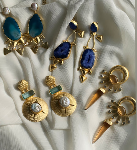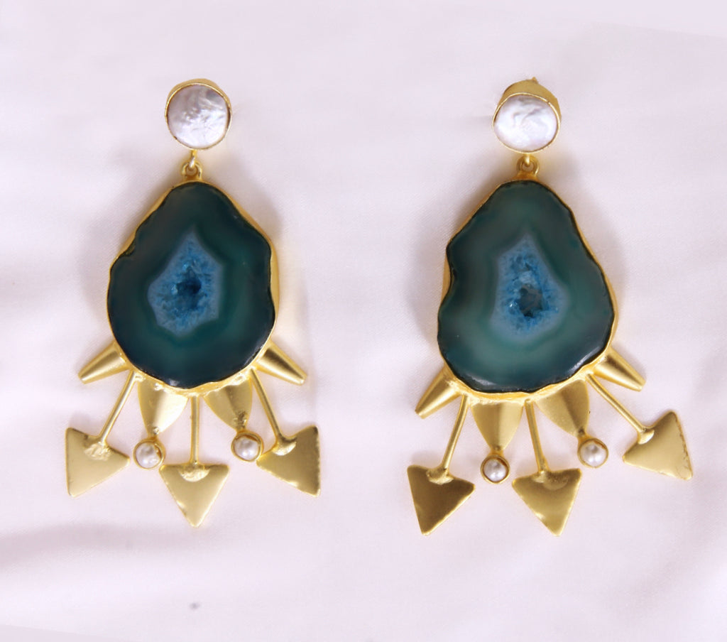 Twyla with greenish agate is the bold earring with a pearl detail! A true follower for the rest of your life.