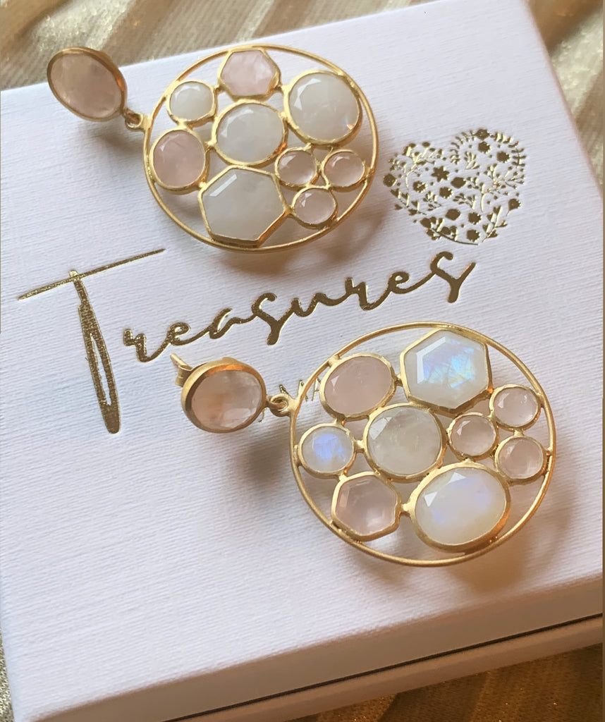 Our favorite Breeze is now available in a new colour! With the most beautiful of stones, Moonstone and rose quartz. Handcrafted in 18K goldplated silver.